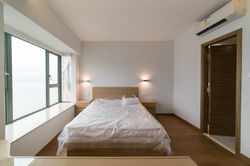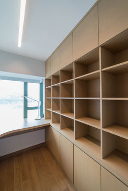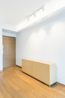 業主大部份時間都在外地,想將單位改成回港渡假時的渡假屋。三房改成兩房連相連衣務間。客廳有暗門設計,一來業主可以掛上收藏嘅畫作,二來招呼朋友時又不失私隱。